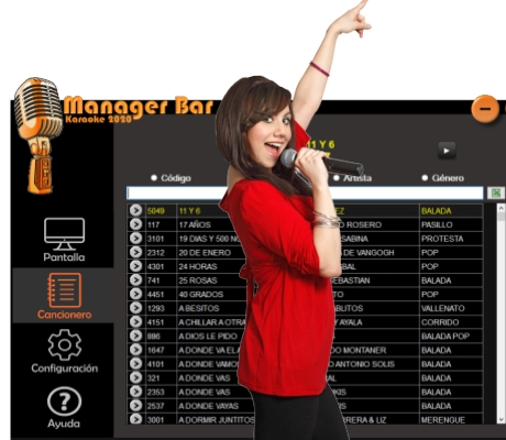 Manager Bar Karaoke es una aplicación para computadoras, que se descarga e instala en cinco minutos, con la que puedes disfrutar de miles de canciones de karaoke de todos los géneros.